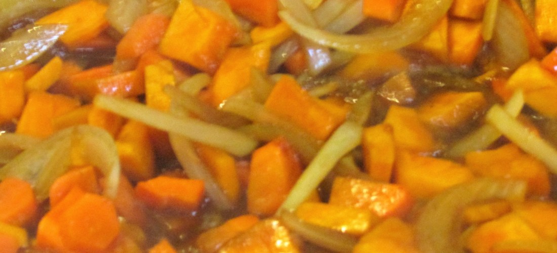 Het lijkt misschien een beetje saai maar dat is het echt niet! Het is nu eenmaal zo dat als je een moestuin hebt, je vele dagen achter elkaar hetzelfde eet. In de zomer komen we om in de sla en nu het winter is en de witlof nog braaf ligt te slapen in de kuil, de nachtvorst het onmogelijk maakt prei van het land te halen, eten we wortel en pompoen. In de kuil zitten ook nog wat winterbietjes en als ik volgende week weer wat langer op het eiland ben, zal ik er daar eens wat van uitgraven. Ik heb nog dille in de vriezer en dat is zo een goede combinatie! Enfin, na een heerlijk maaltje zuurkool uit de tajine de afgelopen twee dagen, heb ik vandaag weer eens pompoensoep  gekookt. Deze soep is iets bewerkelijker dan u van mij gewend bent maar zeer zeker de moeite waard.